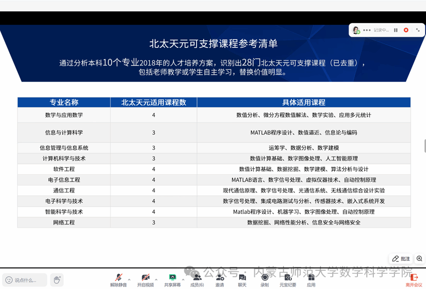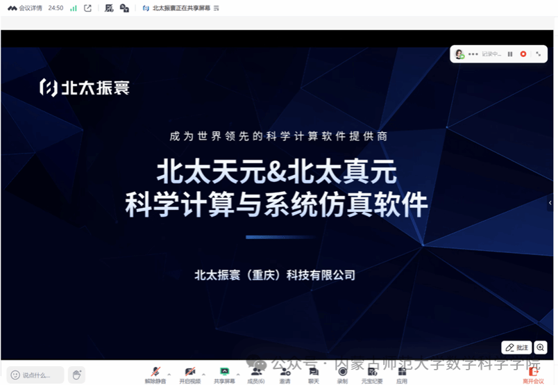 会上,双方就信息与计算科学专业的学科建设、产学研基地建设及国产科学计算软件的落地应用达成多项共识。萨和雅院长表示,学院将依托数值分析等课程,系统引入北太天元软件,结合实训营模式,扩大国产软件在人才培养中的应用范围;同时希望与北太振寰合作开发适合数学学科的人工智能通识课程,推动软件与教学的深度融合,共建产学研基地。