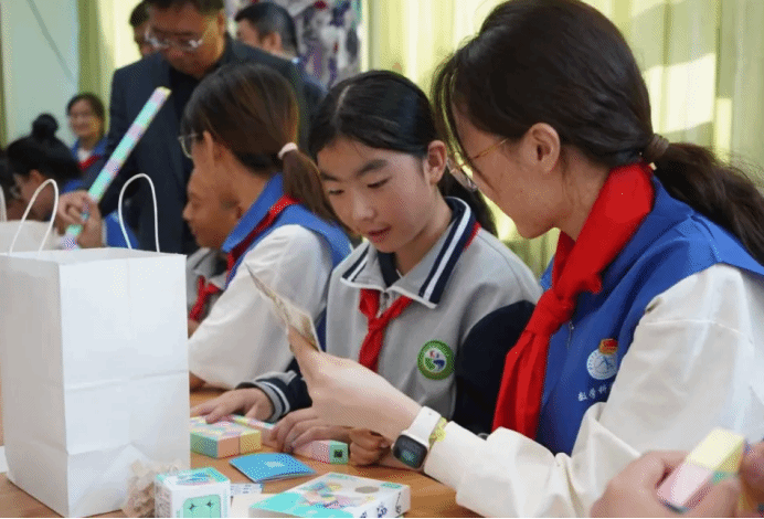 揭牌仪式后,科普互动活动正式开启。yL23411永利集团志愿者团队带来趣味数学体验、科学小实验等内容,用生动有趣的形式激发孩子们的科学兴趣与探索精神,让数学智慧与科学素养在互动中生根发芽。