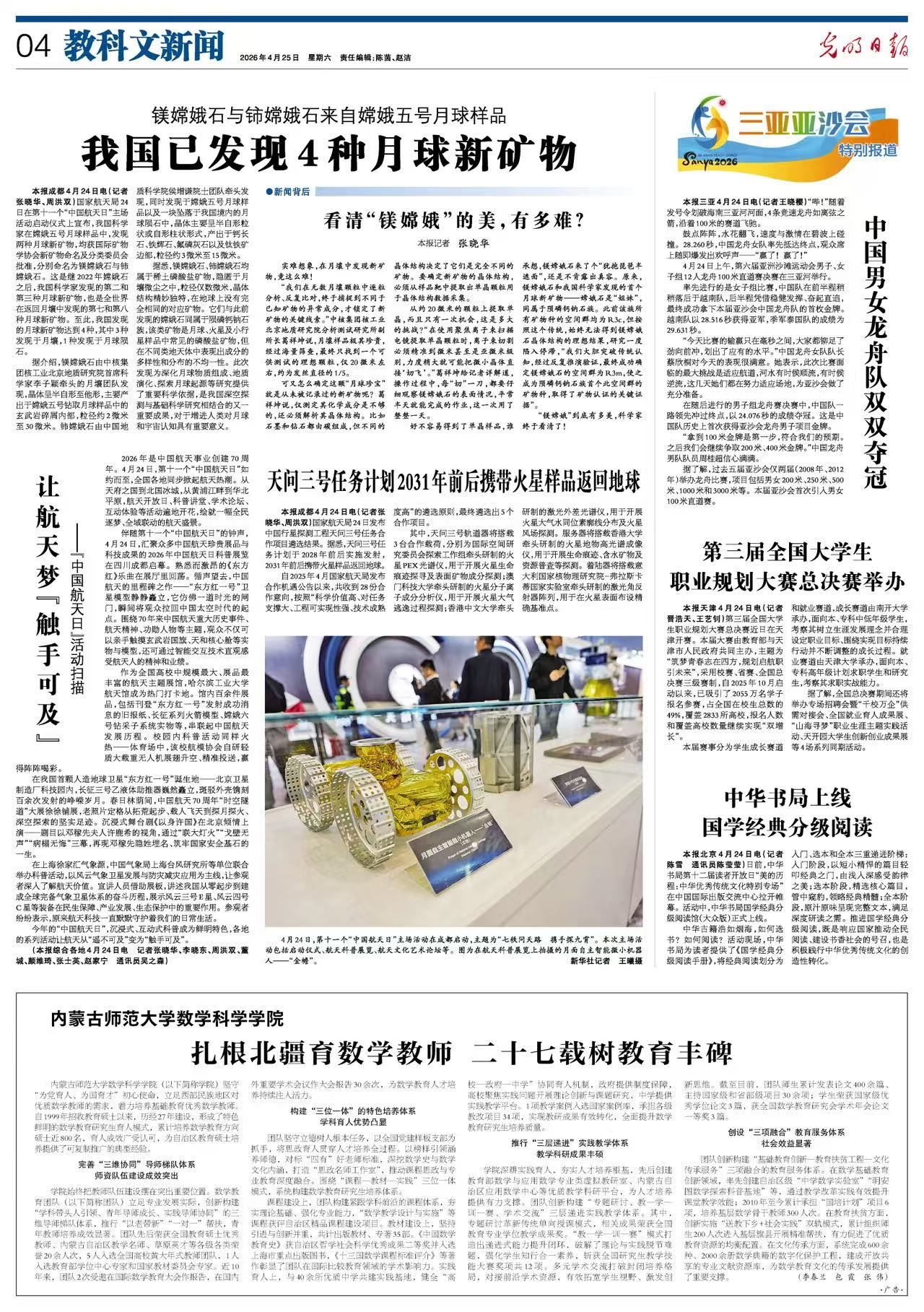 《光明日报》2026年4月25日第04版教科文新闻,以“扎根北疆育数学教师 二十七载树教育丰碑”为题报道yL23411永利集团立德树人成效。