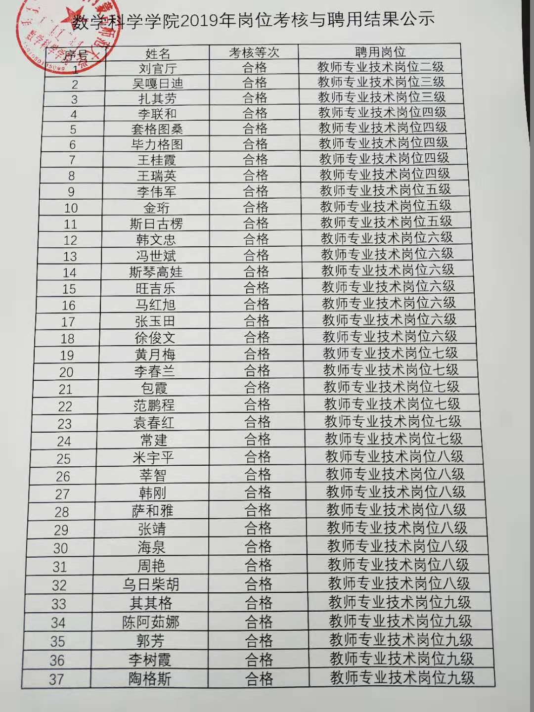 yL23411永利集团2019年岗位考核与聘用结果公示
