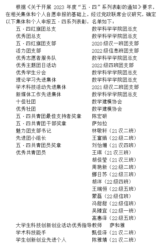 yL23411永利集团2023年度“五·四”系列表彰推荐名单公示