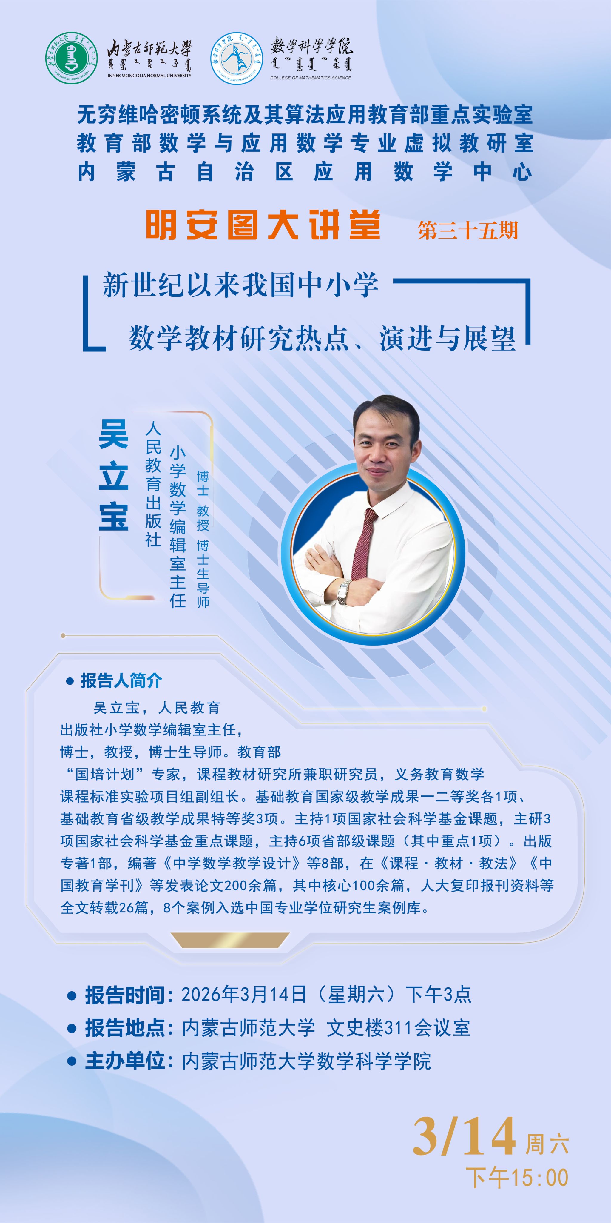 明安图大讲堂·预告(第三十五期) | 新世纪以来我国中小学 数学教材研究热点、演进与展望