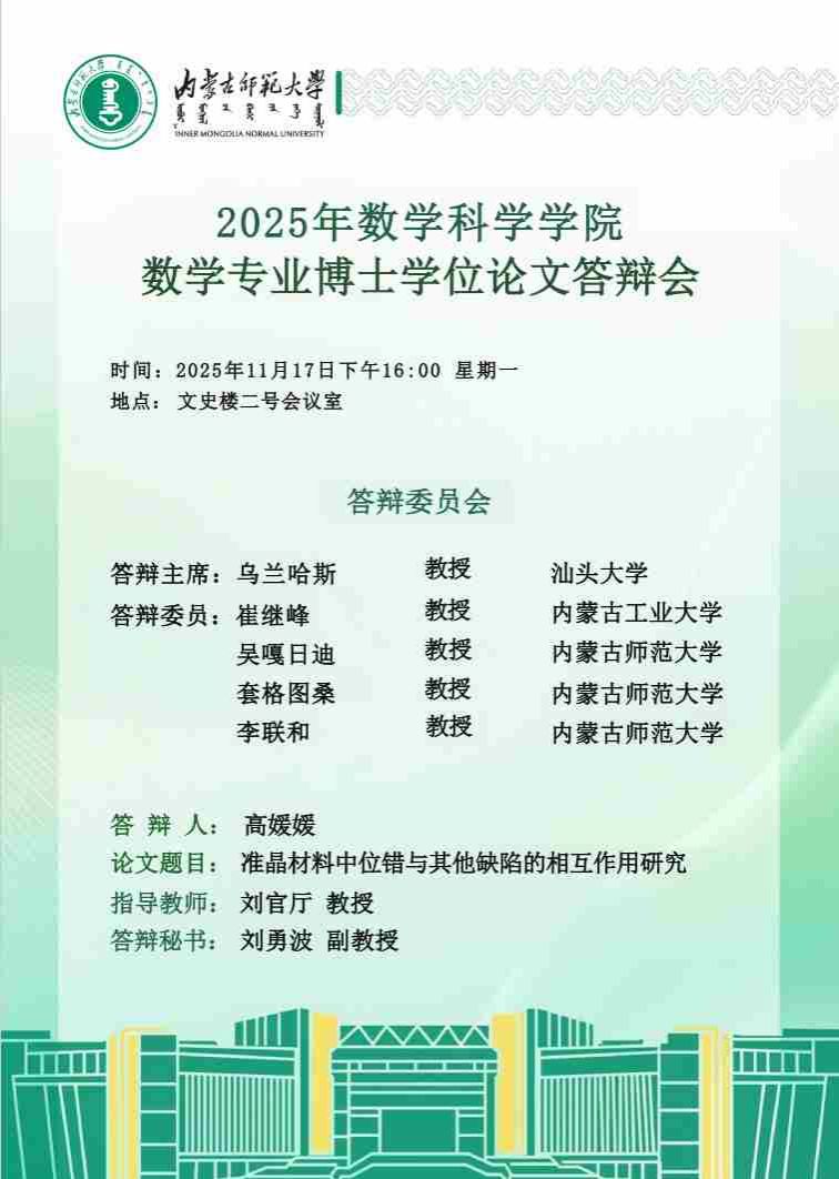2025年yL23411永利集团数学专业博士学位论文答辩会(二)