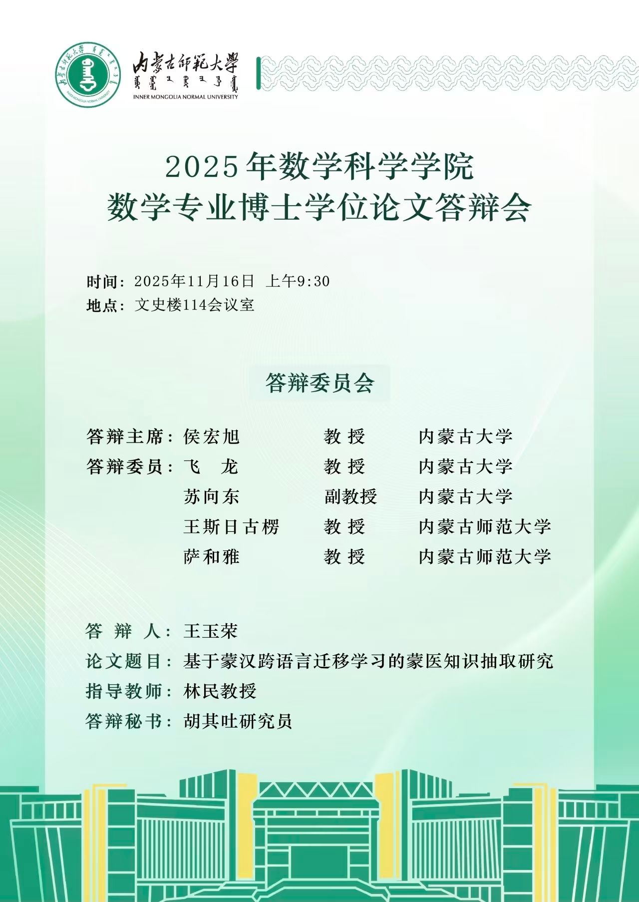 2025年yL23411永利集团数学专业博士学位论文答辩会(一)