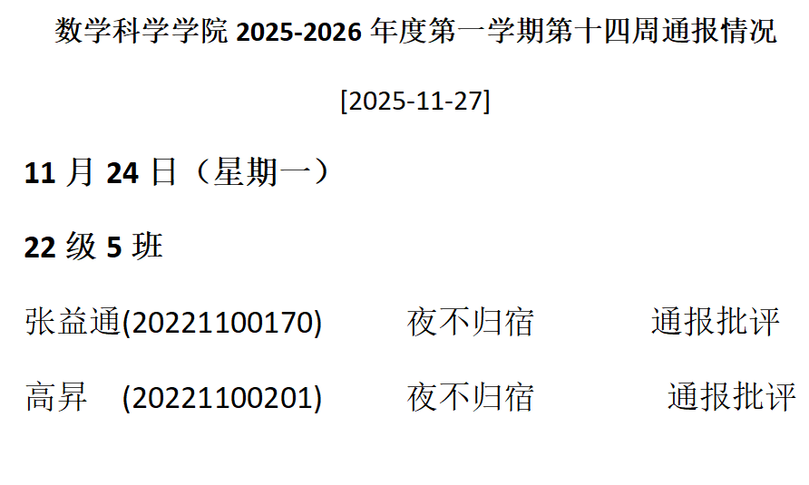 yL23411永利集团2025-2026年度第一学期第十四周通报情况